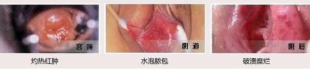 【女性生殖器疱疹症状】:女性疱疹发病时,会出现多数粟粒大丘疹、水疱,可彼此融合成片。2~4天后破溃成为糜烂或溃疡,自觉灼痒、疼痛。损害侵及尿道上皮时患者出现尿痛、排尿困难、尿道口有黏液性分泌物。侵及宫颈上皮时,宫颈糜烂、溃疡、白带增多。部分病例在发病的第1周可出现发热、头痛、恶心、畏光,甚至颈部僵直等病毒血症乃至脑膜刺激症状。